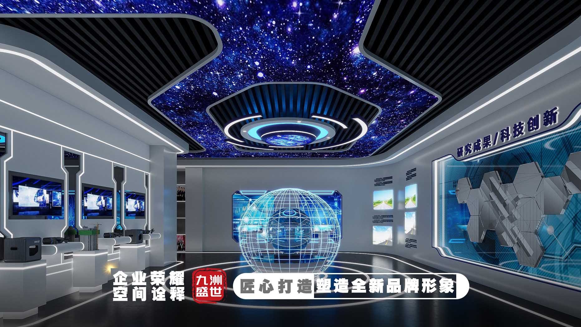 九洲盛世致力于企業展廳、博物館展廳、科技館、規劃館等各類展廳的設計制作,為各類用戶提供從展廳設計到制作到搭建落地的一站式服務!